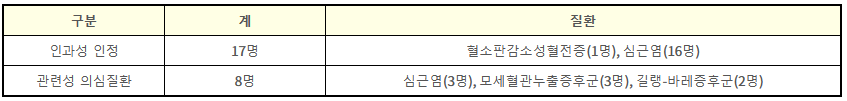 * 현재 바이러스벡터 백신(아스트라제네카, 얀센) 접종 후 발생한 횡단성척수염의 경우, ‘관련성